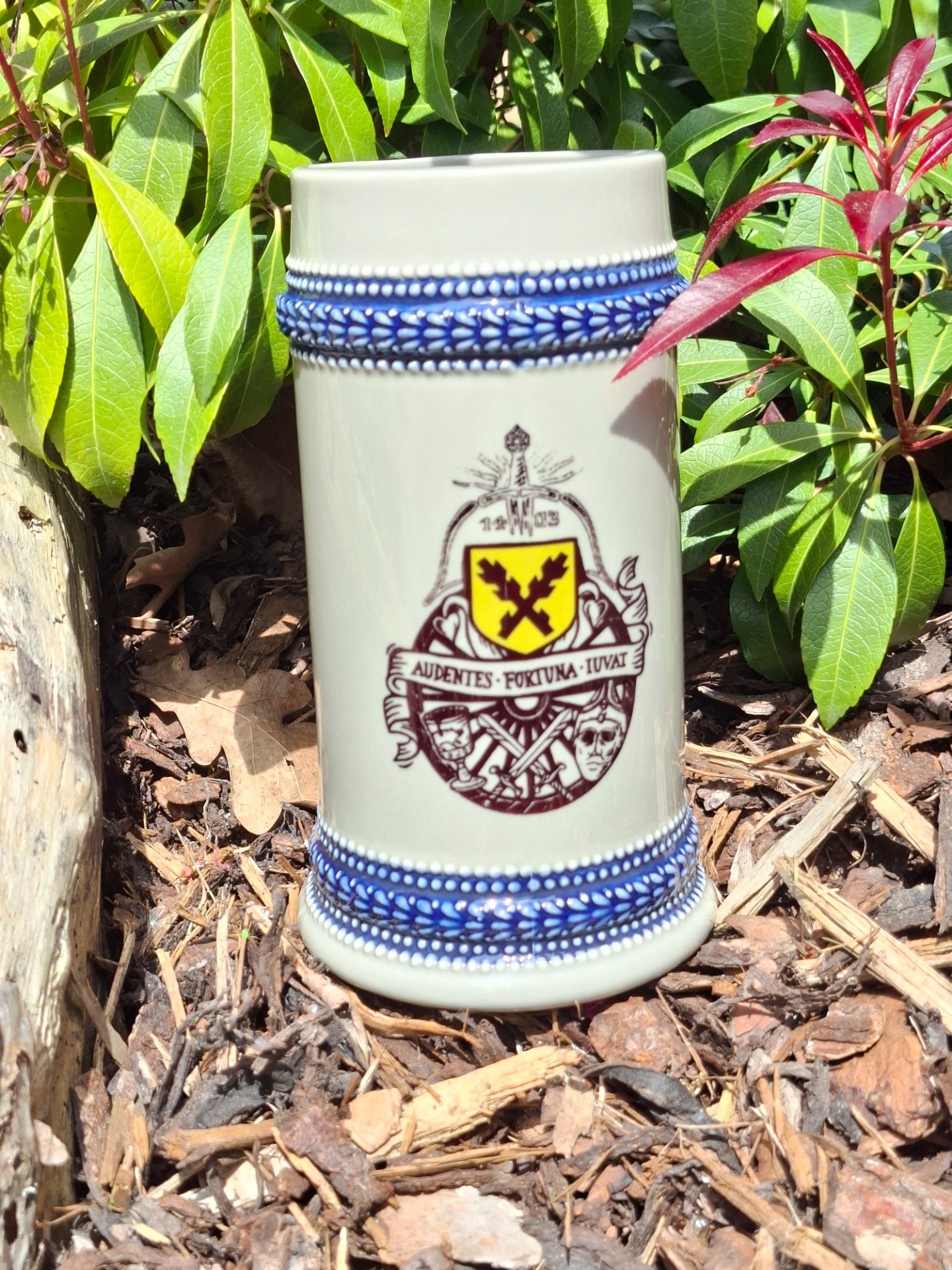 Šedý pivní krýgl s modrými ornamenty, třídy A, je potisknut sublimací. Je určen k ručnímu mytí, ale můžete jej mýt i v myčce. I po několika umytích jsou barvy stále syté. Objem je 660 ml.